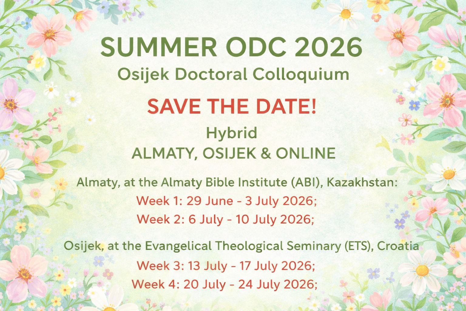 We are pleased to announce that the upcoming Winter Osijek Doctoral Colloquium (ODC) is scheduled to be held between 2 and 13 February 2026, in a hybrid format. Please save the dates in your calendar if you plan to attend the Winter ODC 2026. Locations: Osijek, at...